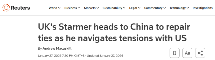 国际在线报道:1月28日下午,英国首相斯塔默乘机抵达北京首都国际机场,开启为期4天的访华行程,这是英国首相时隔八年再次访华。英国《卫报》报道指出,斯塔默此次访华折射出一个更深层的问题,即在国际格局加速演变的背景下,英国未来的战略定位何在?此次中国之行正为斯塔默提供一次阐释其对英国未来发展愿景的重要契机。