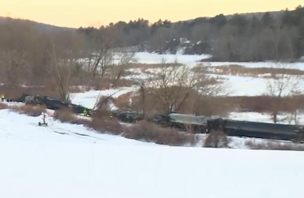 中新网2月6日电 据美媒报道,当地政府称,美国东部时间5日上午,一列载有危险化学品的货运列车在康涅狄格州曼斯菲尔德镇脱轨,部分车厢滑入附近一条河中。