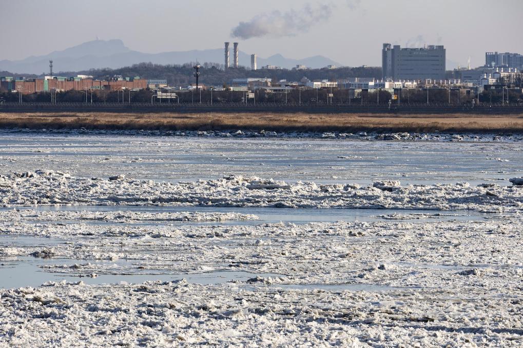这是1月25日在韩国汉江京畿道流域拍摄的浮冰。新华社发(全休相摄)