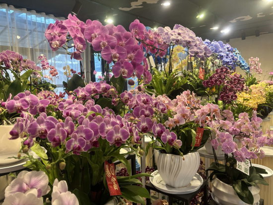活动期间,每日9:00—18:00开放,打造精品品鉴+大众采购双区联动的消费场景,全方位满足市民购花需求。年宵花市集活动主要分布两个核心区域:4000平方米集装箱花卉销售区,近百名商户汇集鲜切花、蝴蝶兰、年桔等热门年宵花品种,品类丰富、物美价廉,适配家庭装饰、走亲访友等多样需求;500平方米精品花卉展销区,紧邻花卉销售区内设兰花、盆景插花、精品年宵花三大主题展销区,集中陈列约1000盆精品年宵花,同时邀请花艺大师进行插花表演,展销区设置直播间,线上线下同步为市民呈现专业花艺盛宴。
