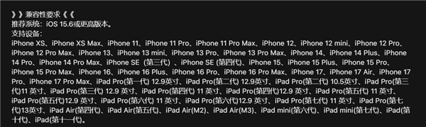 官方提醒,目前游戏推荐使用iPhone 12 Pro或iPad Pro(第四代)11英寸及以上机型,推荐系统iOS 15.6或更高版本。