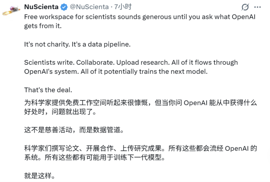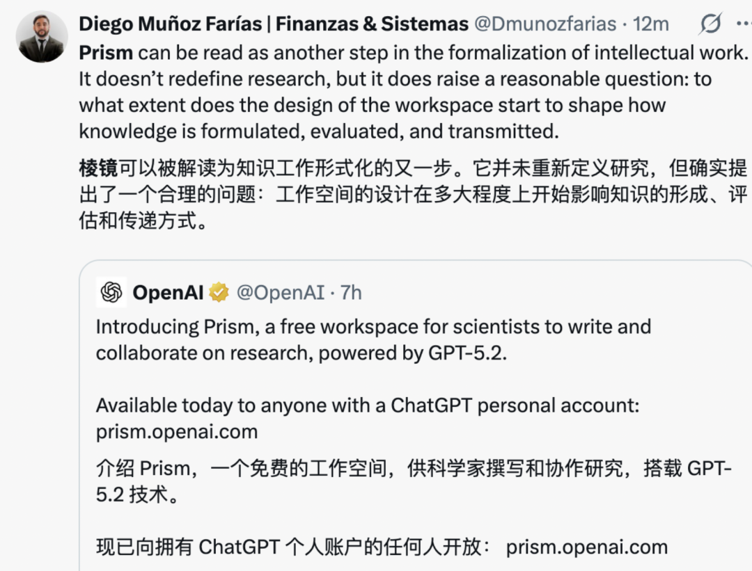 而面对 Prism 提供的强大能力,有网友认为,「Prism 虽然没有重新定义科学研究,但提供了一个合理问题:工作空间的设计在多大程度上开始影响知识的形成、评估和传递方式。」