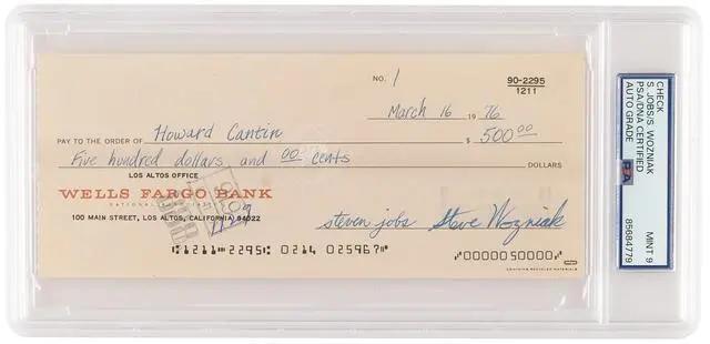 1 月 31 日消息,科技媒体 Cult of Mac 昨日(1 月 30 日)发布博文,报道称在 1 月 29 日举办的 RR Auction 拍卖会上,由史蒂夫 · 乔布斯(Steve Jobs)和史蒂夫 · 沃兹尼亚克(Steve Wozniak)共同签署的“苹果 1 号支票”以 2409886 美元(IT之家注:现汇率约合 1675.5 万元人民币)的天价成交,创下公开拍卖支票的最高纪录。