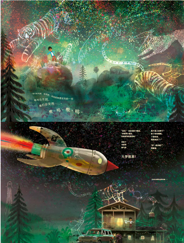 这是一本献给每个“还没找到梦想”的孩子的图画书。课堂上,老师让孩子们说说自己长大后想成为什么样的人。每个人都畅所欲言,好像都对未来有所规划,除了亚伦。他不知道,他还没有想好,并为此焦虑不安。回家的路上,爸爸看出了亚伦的心事,于是停下车,带着亚伦到一旁的丛林里漫步,由此展开了一场温柔且深入的对谈。