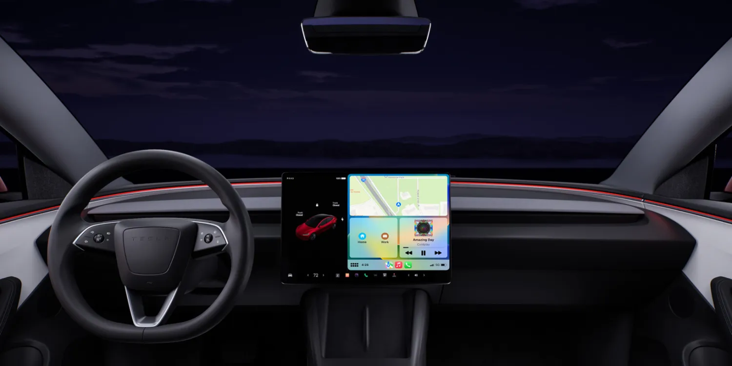 在交互逻辑方面,不像部分传统车企那样允许 CarPlay 完全接管整个屏幕,特斯拉计划将 CarPlay 深度集成至其现有的车载娱乐交互界面中,CarPlay 将以“应用窗口”的形式运行。