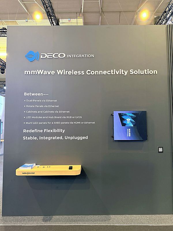 成立于2021年的德氪微已连续四年亮相 ISE。过去一年,德氪微围绕多形态LED显示产品的内部互连持续推进毫米波无线连接技术落地:在实现屏内无线数据传输与无线供电的基础上,将能力下沉至COB模组级,并兼容SPI、Ethernet、LVDS、HDMI、USB、RGB等主流接口与协议,提升系统适配性与部署灵活性;同时推出近距离毫米波无线以太网与无线HDMI 整体方案(MDKT157xES、MDKT167xHL),以及支持旋转传输以太网协议的SDKT1020-FET模组,为多形态产品提供更可复制的集成路径。