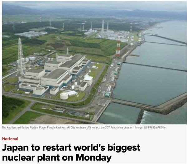 柏崎刈羽核电站是全球装机容量最大的核电站,但此次仅有7座反应堆中的1座将重启。