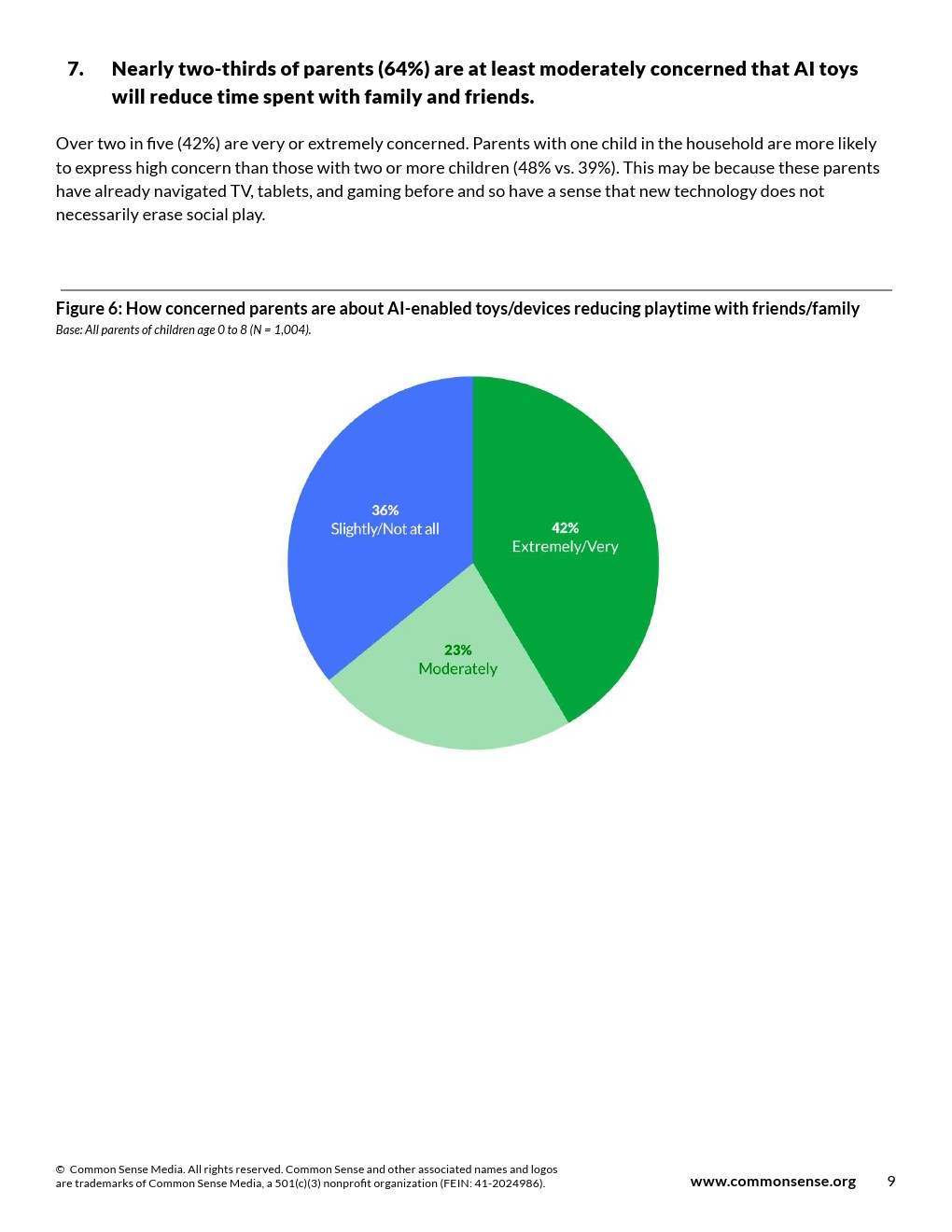 64%的家长至少中度担忧人工智能玩具会减少孩子与家人朋友的共处时间。