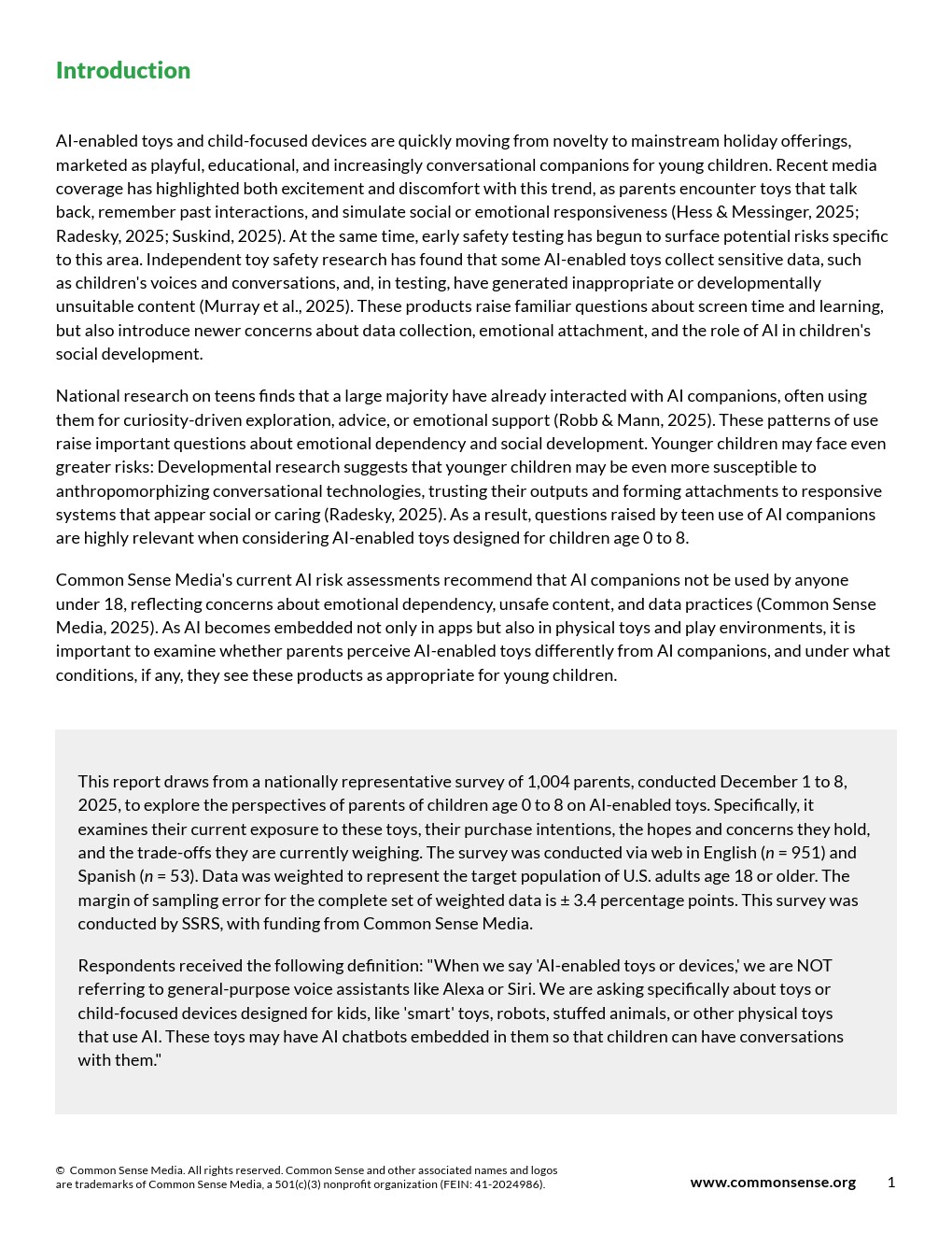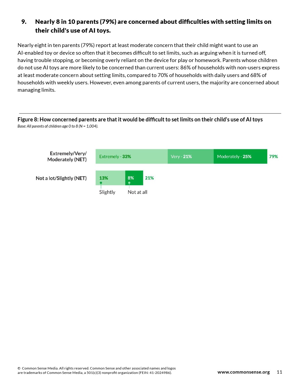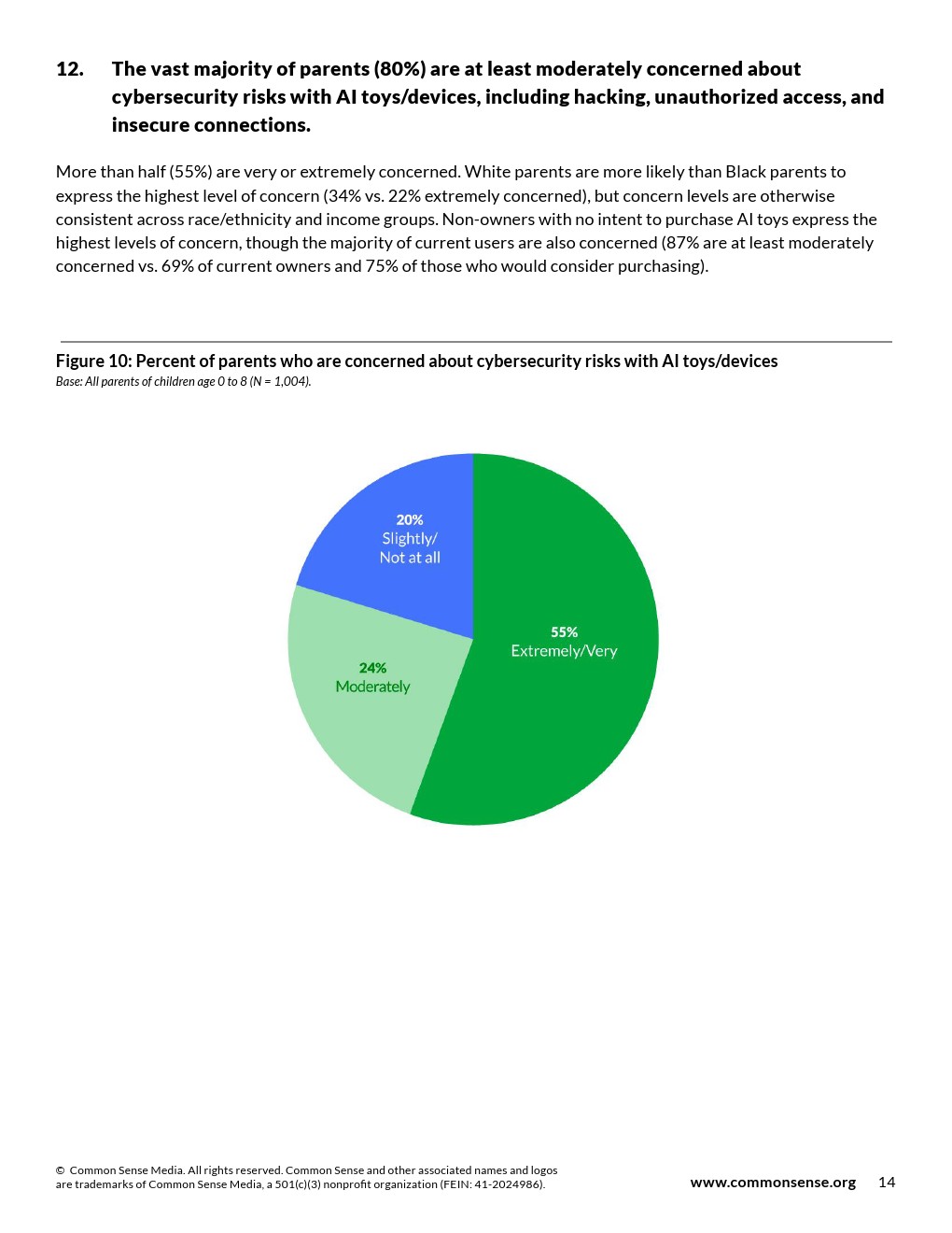 80%家长至少中度担忧人工智能玩具/设备的网络安全风险。