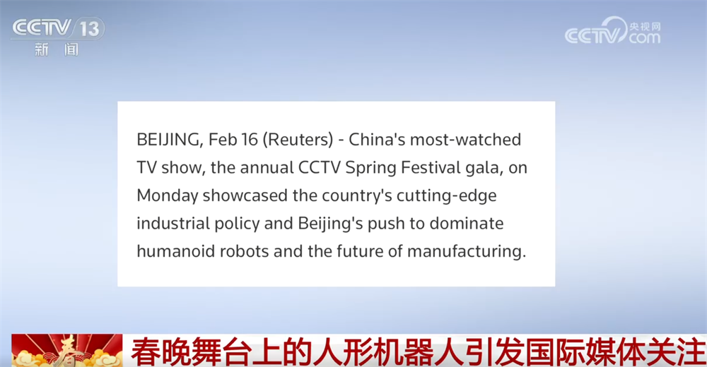 央视网消息:2026年总台春晚播出后,春晚舞台上的人形机器人节目引发国际媒体关注,一起来看看它们是怎么说的。