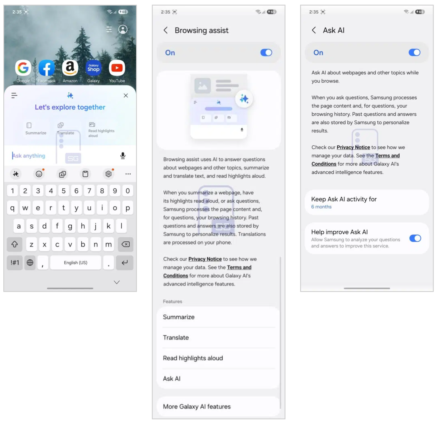 One UI 9 版三星浏览器新增“Ask AI”功能,支持用户就当前浏览的网页提出疑问,以简洁有序的布局呈现答案,甚至允许回顾过去的对话。IT之家附上相关视频如下: