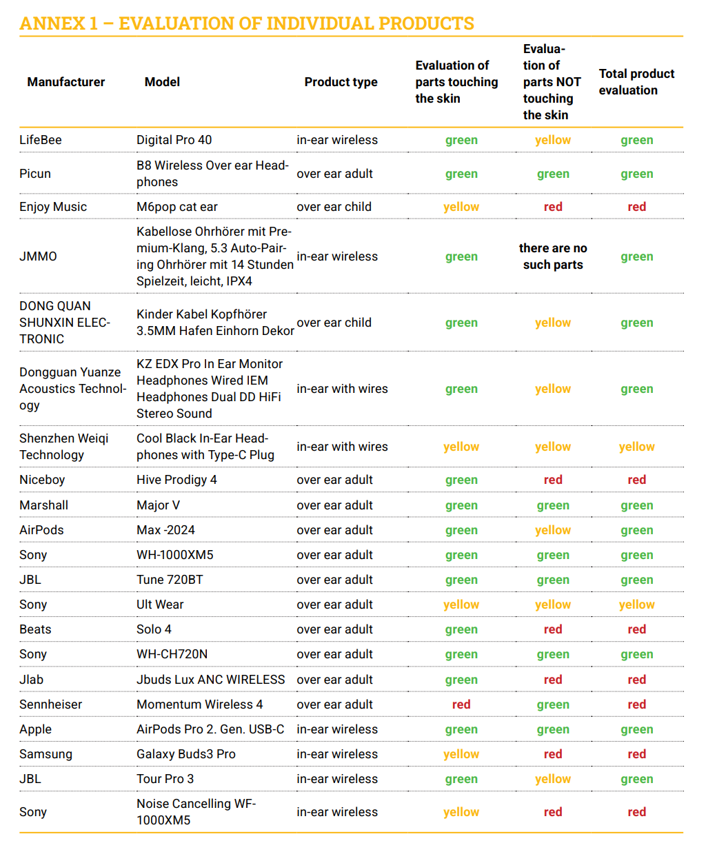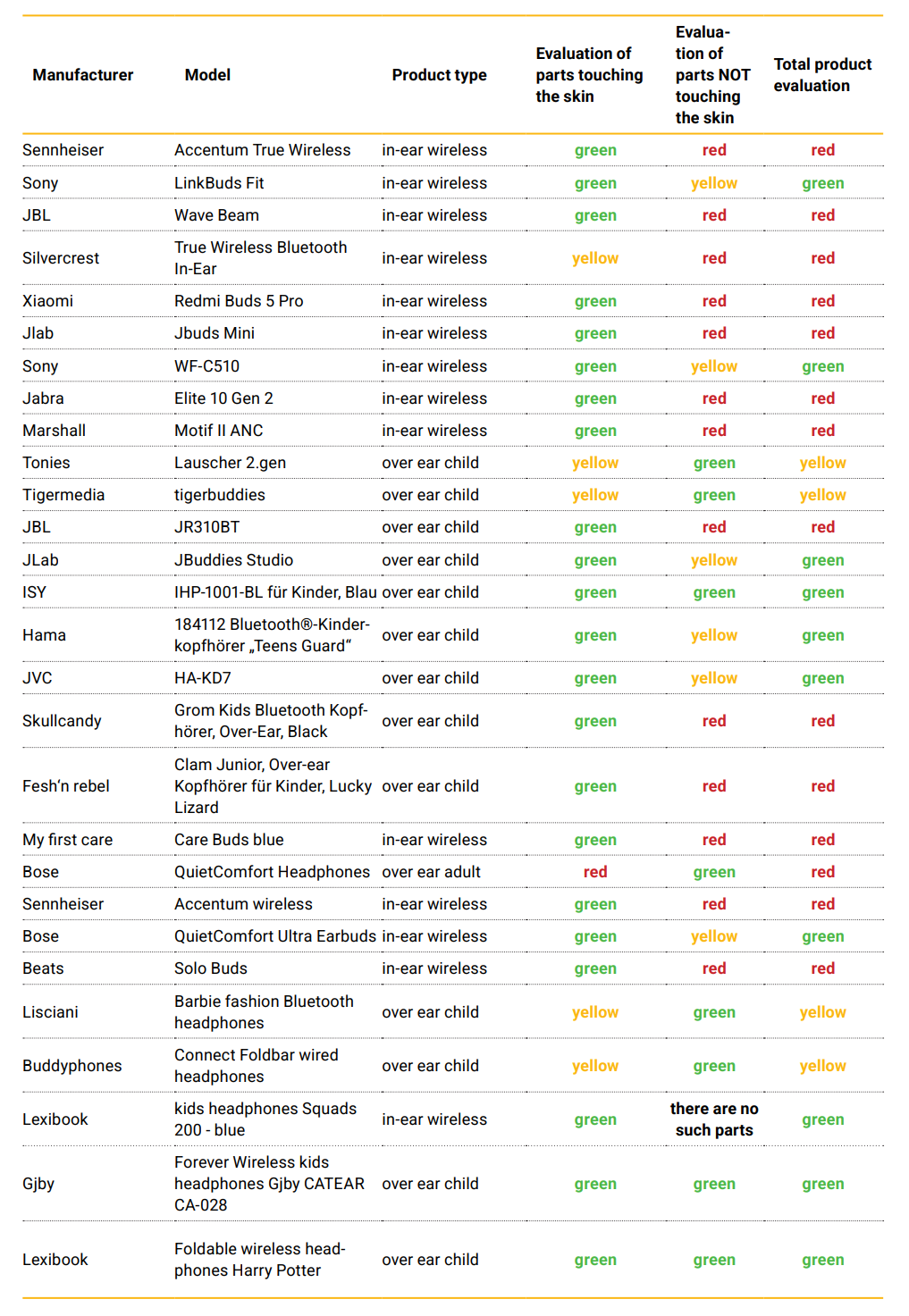 该机构从捷克、斯洛伐克、匈牙利、斯洛文尼亚和奥地利的实体店,以及 Shein 和 Temu 等在线市场购买了 81 款入耳式及头戴式耳机,测试样本涵盖了 Apple、Bose、Panasonic 和 Sony 等全球知名品牌。