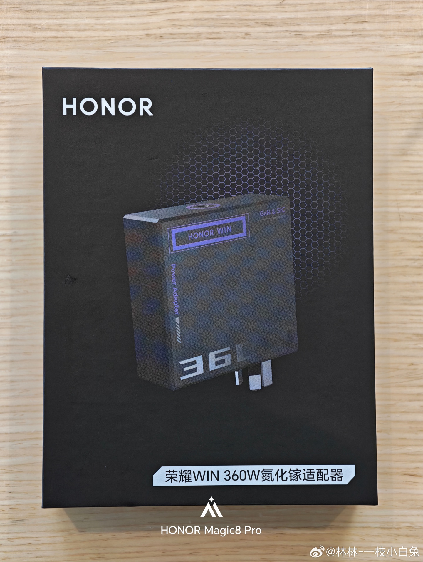 IT之家 3 月 31 日消息,荣耀 WIN 游戏本官宣于 4 月发布,荣耀中国区智慧生活业务部部长林林今日晒出了荣耀 WIN 360W 氮化镓适配器,表示可以单独购买。