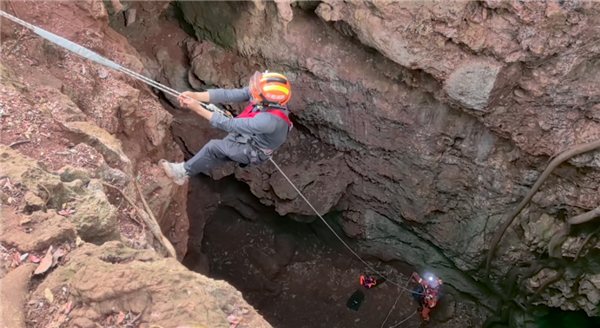不料,男子通过绳降方式下到15米深的洞穴底部后,发现无法靠绳索返回地面,只好报警求助,最终经过紧张救援,男子成功脱困。