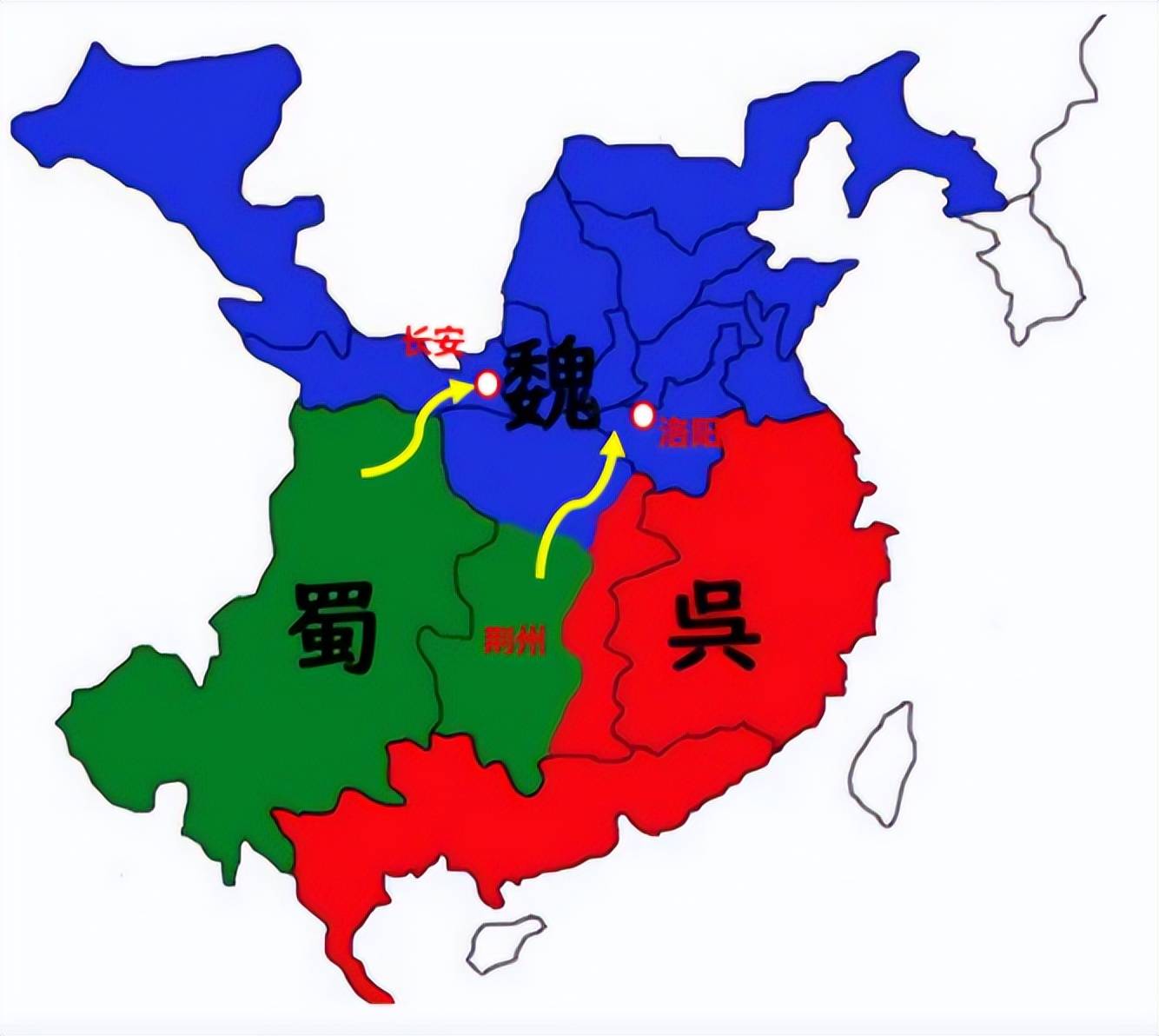 而诸葛亮却不这么认为,他觉得要率先占领荆州。毕竟荆州是东吴、蜀汉、曹魏的三方交界之处,占领荆州,无疑于先占领了军事先机。