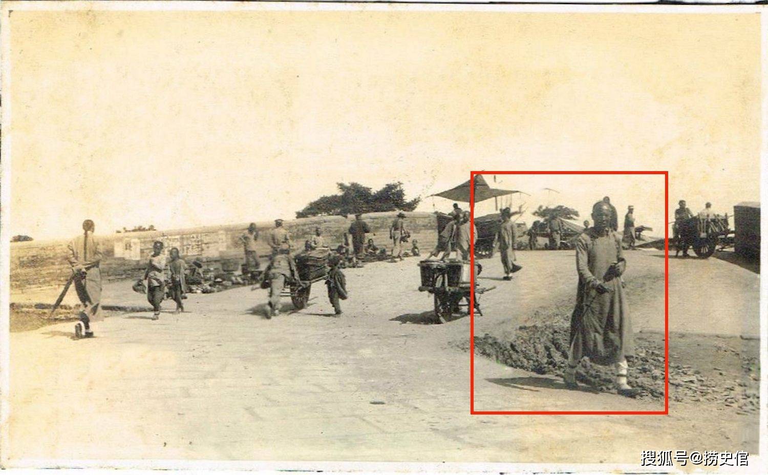 清末民初,来华的洋人比较关注“中国的刑法”,其中有一种带有羞辱性的惩罚是监外服刑的戴镣犯人。这种犯人有时还要拖带一种更重的器物,如铁柱,石锁,既能勉强行走,又不可能让犯人逃脱太远;还有一种戴的脚铐和手铐都有长细铁链连接,犯人行走活动相对比较宽松些。这种刑法主要用于家境较好,罪行较轻的犯人,外出行走时相对隐蔽些。这种服刑在民国初年的外省也有记载。图一老照片拍摄于民国初期。