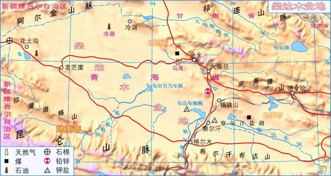 柴达木盆地海拔太高,四周是更高的山脉,人烟稀少,主要城市有东北缘的德令哈。