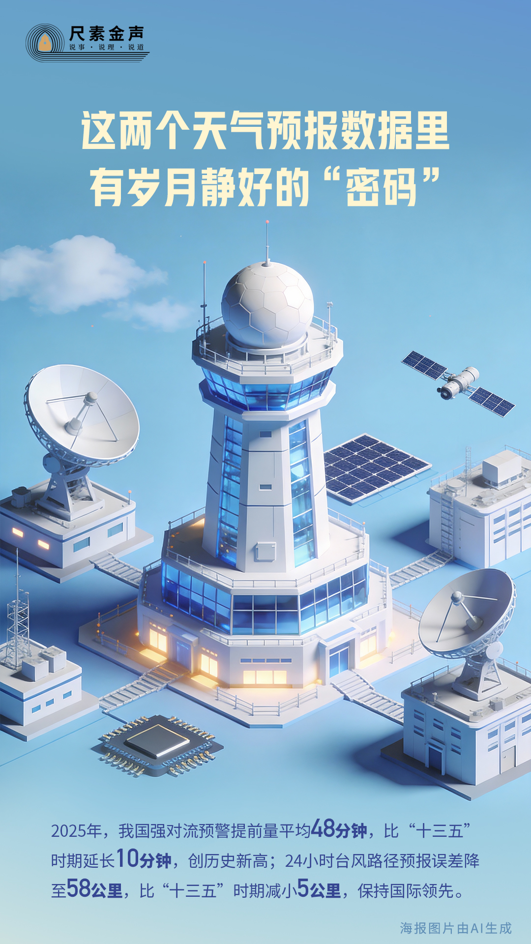 最新的2026年全国气象工作会议报告显示,2025年,我国强对流预警提前量平均48分钟,比“十三五”时期延长10分钟,创历史新高;24小时台风路径预报误差降至58公里,比“十三五”时期减小5公里,保持国际领先。