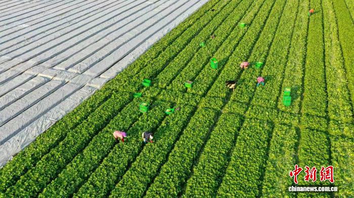 在湖南新田县东升农场,村民正在采收蔬菜。钟伟锋 摄