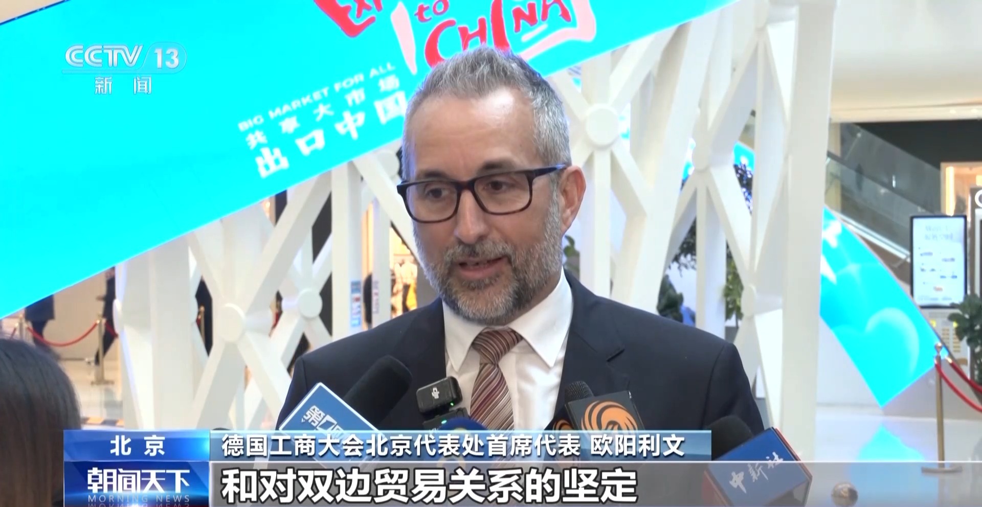 德国工商大会北京代表处首席代表 欧阳利文:今天的活动也传递了信心和对双边贸易关系的坚定,中国市场变化很快,消费者偏好也在变化。因此专门为中国设计和制造的产品需求很高,考虑到中国市场的规模,这些是令人兴奋的机会。