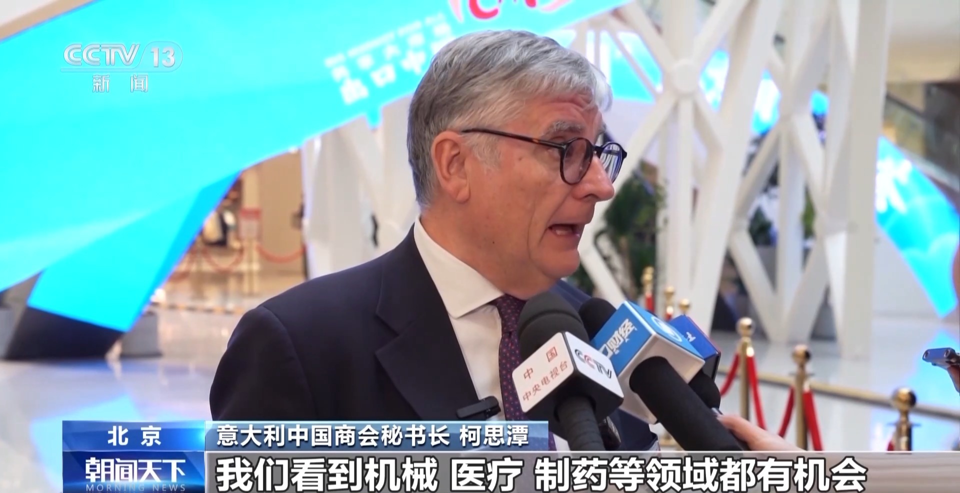 意大利中国商会秘书长 柯思潭:我们看到机械、医疗、制药等领域都有机会,还有意大利传统优势产品,比如时尚和设计等。未来五年中国将提振消费,这对我们来说是额外的机会。