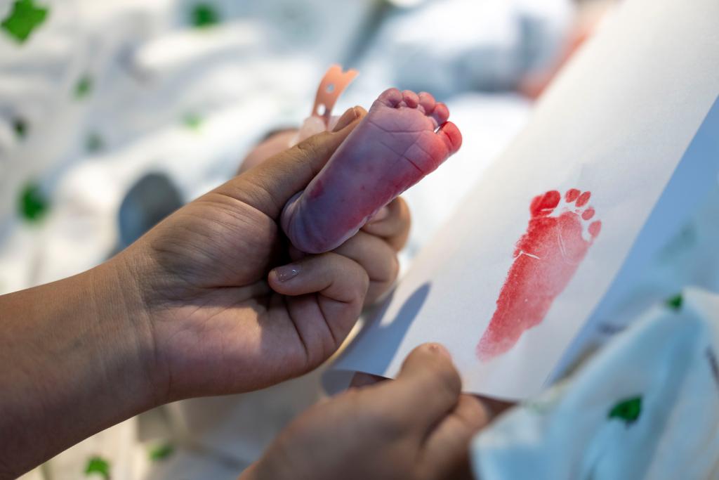 2026年1月1日,西藏自治区人民医院妇产科助产医生为新生儿印脚印。新华社记者旦增尼玛曲珠摄