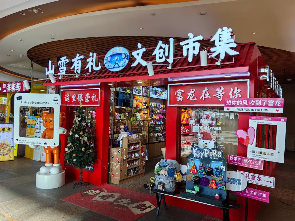 2026年1月16日拍摄的崇礼富龙滑雪场的一家文创产品店(手机照片)。新华社记者 高博 摄