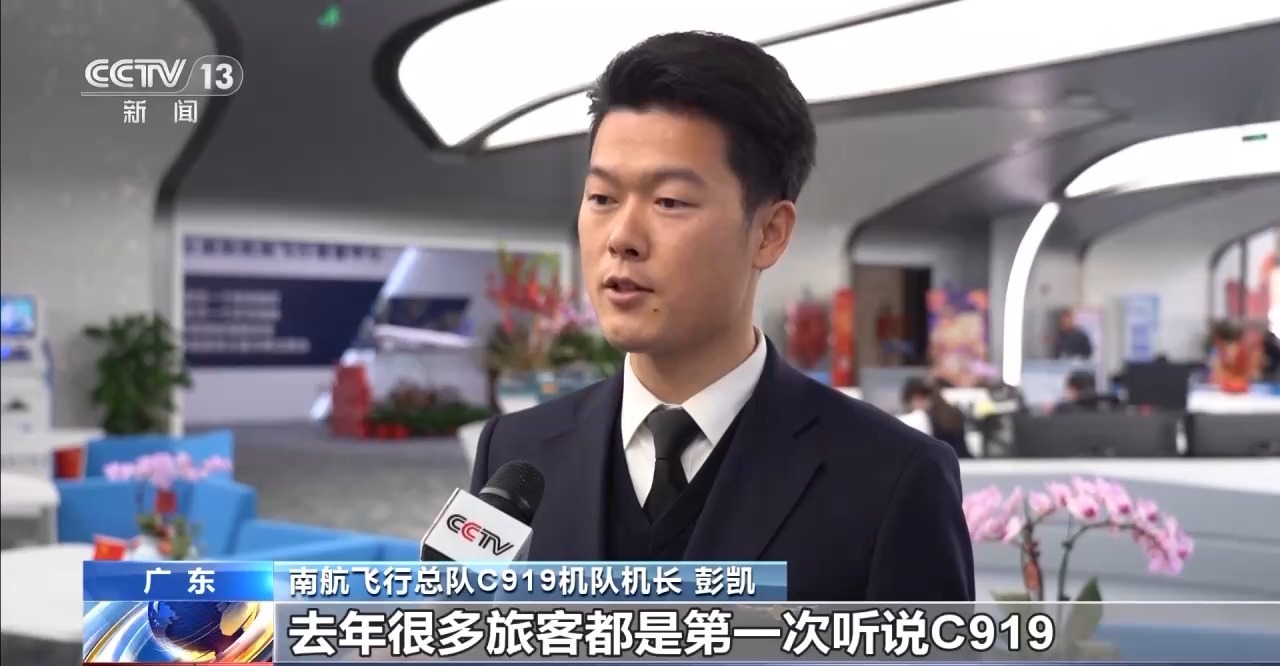 南航飞行总队C919机队机长 彭凯:去年很多旅客都是第一次听说C919,今年可能有些不一样,很多旅客已经主动选乘去拍照打卡这个机型了。