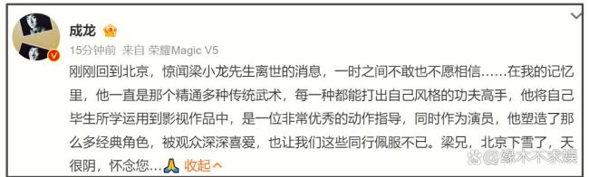 家属澄清梁小龙年龄误解 生前澄清两大误解!梁小龙去世,死因已得到好友证实,成龙也发声悼念。目前家人正在低调处理后事。他的离世也让伴随他多年的两个误解得以澄清。
