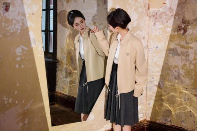 合作规格空前,Prada为杨幂拍摄了《VOGUE》2026开年封面,并推出全球广告宣传,将其定位为“高智感”代表。在第八届T风格论坛上,杨幂身穿咖色工装夹克配百褶半裙,复古盘发突出了“知识分子风格”,粉丝称赞其“贵气学院风”。她的Polo衫配眼镜造型迅速引发了“高智感穿搭”潮流。