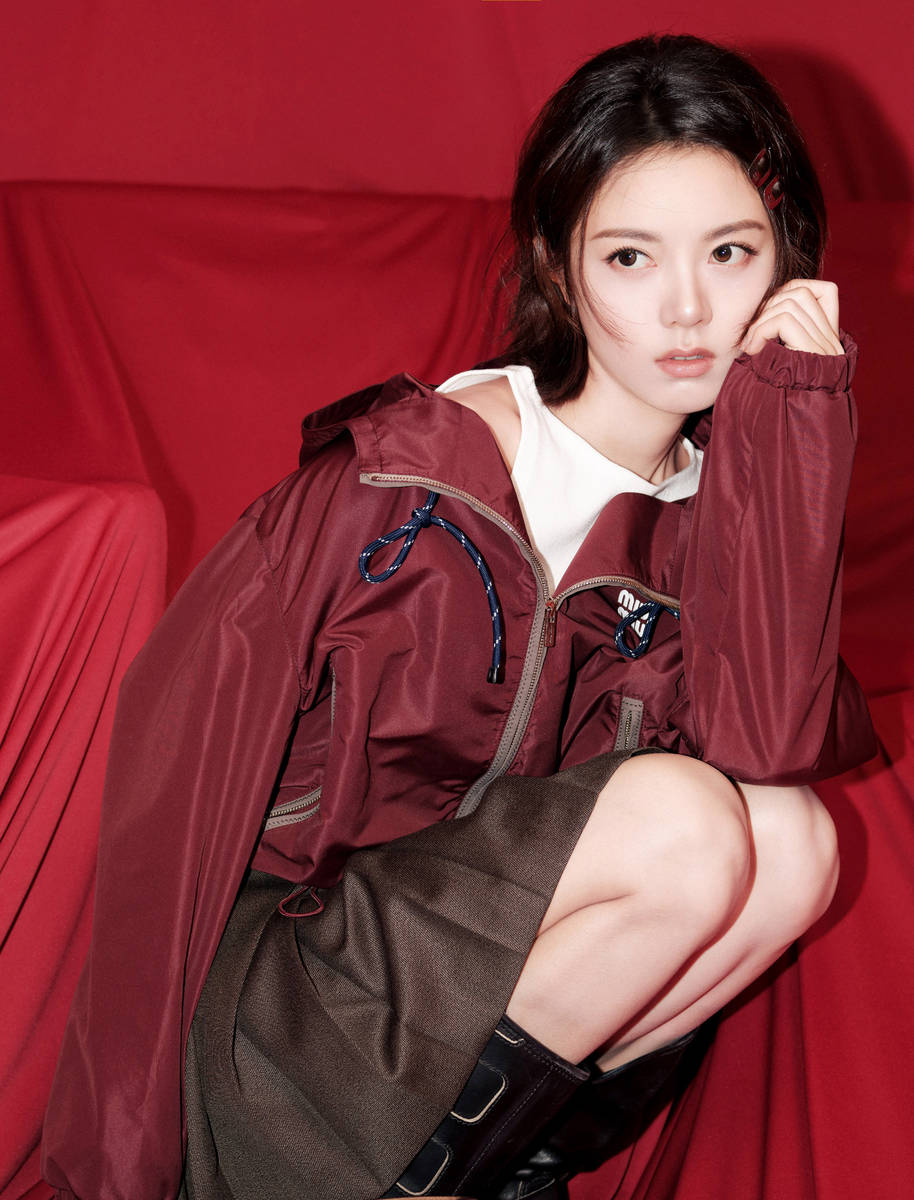 赵今麦穿运动外套又甜又酷 眼神沉静尽显优雅大气