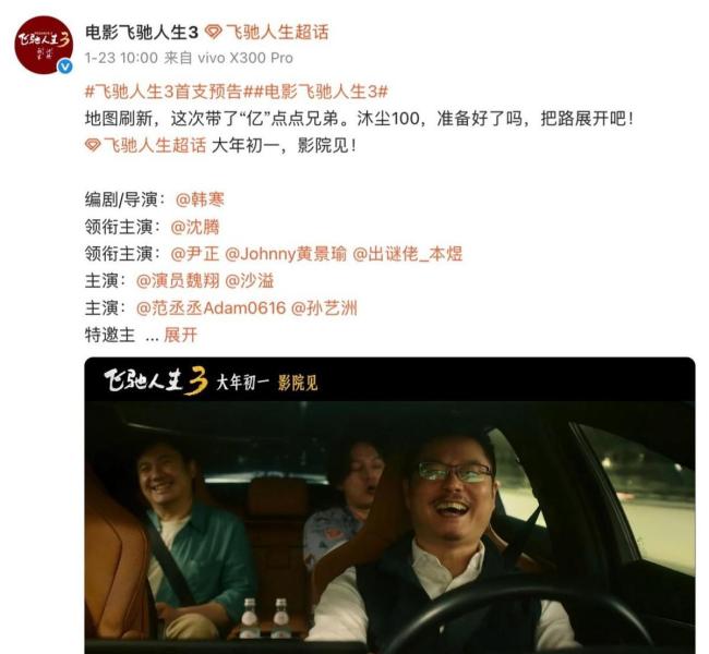 2026年春节档临近不到一个月的1月23日,《飞驰人生3》正式宣布定档,并推出第一支预告,演员阵容一亮相便引发观众期待。这次的故事不仅更燃更激烈,还打破了以往只聚焦一个主角的叙事方式,把整个系列的故事架构提升到了新高度。
