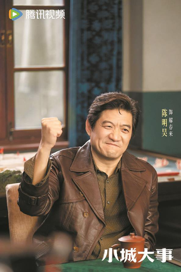 40集的《小城大事》,陈明昊演月海镇副镇长解春来,三个副镇长,加上黄晓明演的镇党委书记、赵丽颖演的镇长,形成一台群戏。陈明昊在对纪委来调查书记徇私时为其所做的愤怒的辩护,其精彩,超越了他与黄晓明关系的呈现。他与耿乐的对手戏也是有质感的,直男对着直男。赵丽颖演的镇长,气质上更像一个高校青年教师去农村搞实验。轻喜剧可以是主旋律作品选择的风格,农村片也适合喜剧的土壤。但是解春来与高雪梅的夫妻戏,还是生硬了。一场戏是表现解春来在全体干部开会时面对高雪梅没经过他同意而签下造工业园区千万元的借贷合同(以他家的印刷厂做抵押)的不满。一场戏是高雪梅在孙小燕开的卡拉OK厅,因为解借钱给孙而对丈夫当众辱骂咆哮打闹。前一场戏,陈明昊尽量演出那憋屈的忍。后一场戏,朱媛媛将泼辣疯狂演得辛苦。但是,喜剧再夸张也要遵循生活的真实与人物的逻辑。一个开着年产值几百万元印刷厂的女厂长,如果是这种素质,哪里还开得了厂。如果是因爱生恨,那前面缺乏铺垫。突然离婚,好是勉强。陈明昊只能混沌着,他不可能去演硬滑稽。