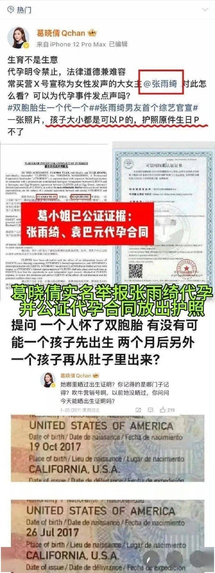 爆料者指出,张雨绮对外宣称的“双胞胎”,实际出生时间并不一致:一个于2017年7月出生;另一个,则在同年10月通过海外代孕出生。
