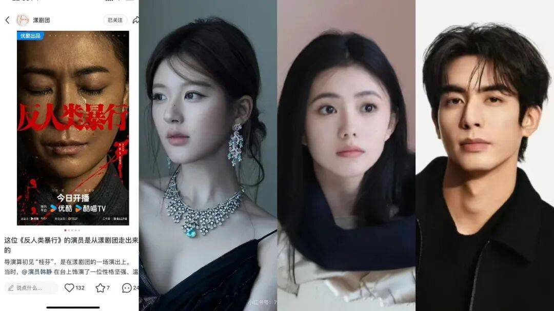 在优酷体系内,影视圈往话剧圈输送演员的同时,话剧圈也在反向输送。比如《反人类暴行》里演技颇受好评的女二韩静,就是资深的话剧演员。