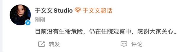 于文文工作室随后发文表示:“目前没有生命危险,仍在住院观察中,感谢大家的关心。”