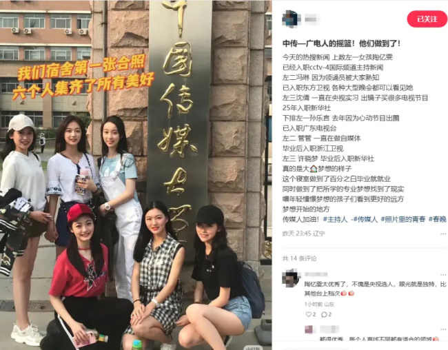 六人从校园同窗到职场同行,覆盖央媒、省级卫视等核心传媒阵地,完美诠释了把专业梦想照进现实的青春模样。网友纷纷表示赞赏,认为她们展示了最优秀的女性形象,在各自领域闪闪发光。