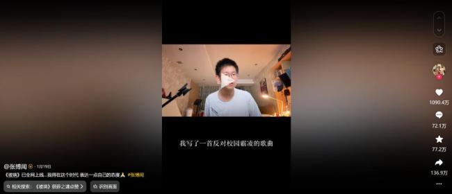 张博闻感谢在这期间帮助过他的同学和朋友们,但他表示希望不要捧得太高,害怕被流量反噬。他更希望大家能关注反对校园霸凌这件事。