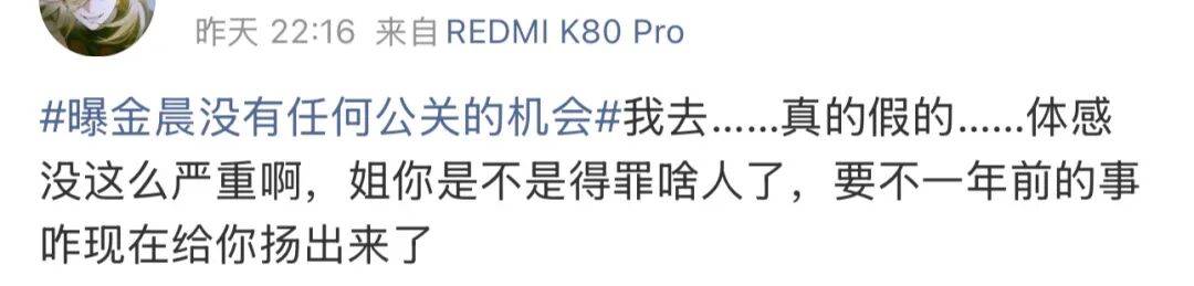 说实话,在阿杠不算太遥远的冲浪记忆里,金晨一直是个挺“虎”也挺“刚”的姐。别的女明星吧,可能对恶评睁只眼闭只眼,或者交给团队发个不痛不痒的律师函。她不一样,她是真爱亲自下场。