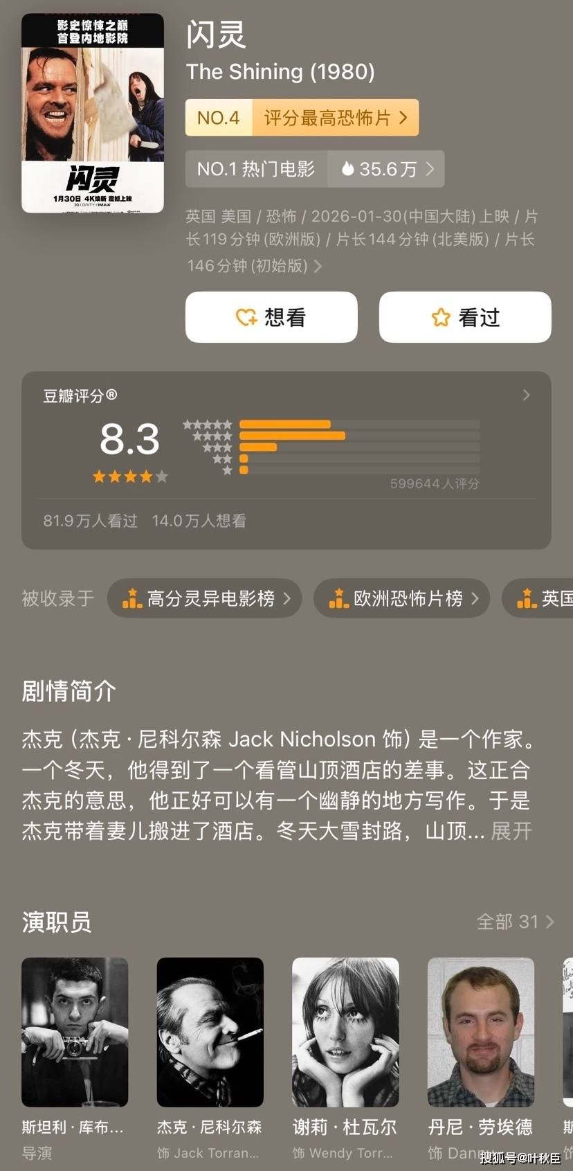 如果你看完之后觉得并不恐怖,那或许就是与“闪灵”无缘。