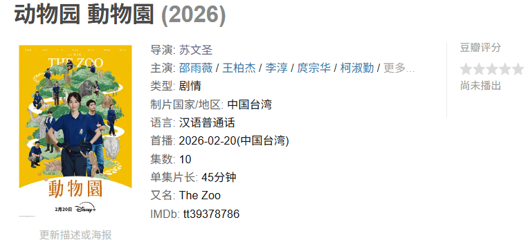 Disney +制作的一套台剧,据说质量还不差,是比较温暖的职场剧,故事发生在动物园。