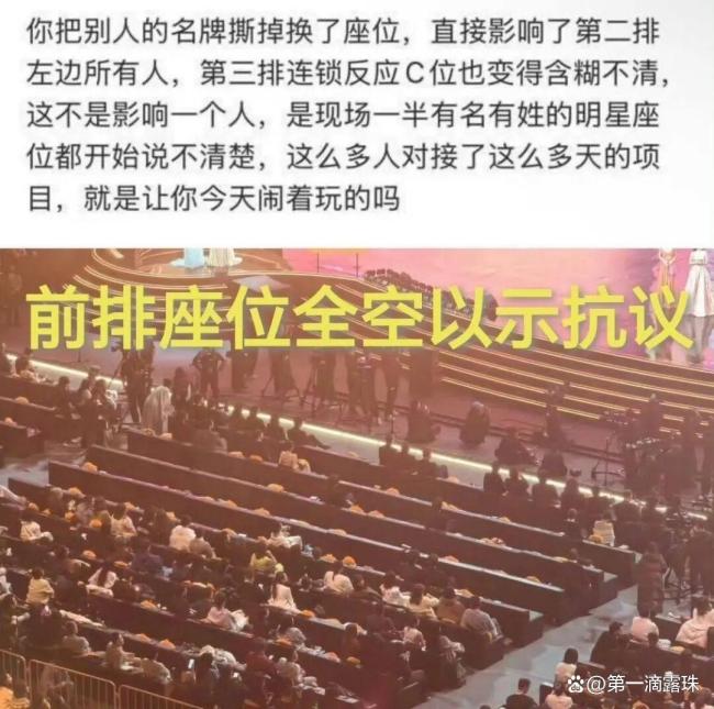 最让人意外的是辛芷蕾,她离场时直接撕走了自己的名牌,明摆着表达不满。主办方发布致歉声明,称只是“工作人员复查时粘贴错误”,否认故意换座,但这并未平息网友的吐槽,认为这是推卸责任的表现。