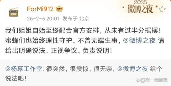 事件发酵后,各方回应陆续到来。杨幂工作室发声明,用“很突然,很震惊,很无奈”三个词定性,并@微博之夜官方要求彻查,强调杨幂没参与任何抢位操作。肖战方则比较低调,没有公开回应,但粉丝全程硬刚,直言肖战无辜被挪位。有现场观众透露,肖战为了避免争议干脆暂时离开了内场,直到领奖时才回来。