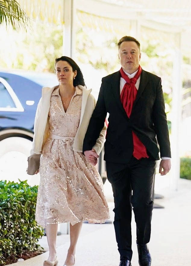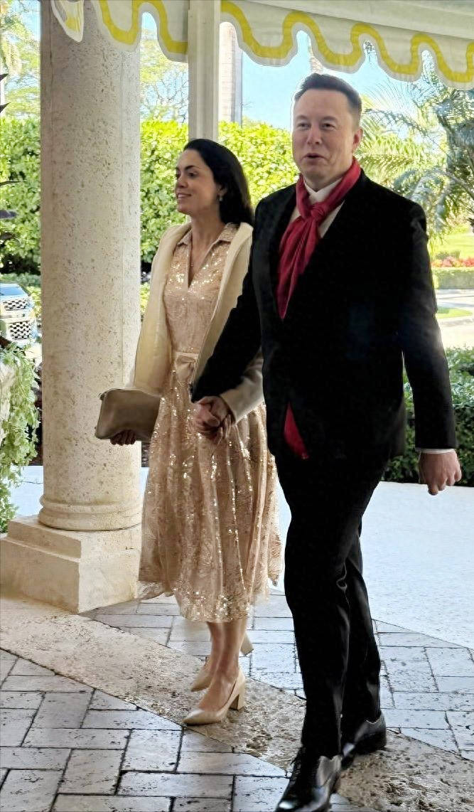 这场举办于海湖庄园的婚礼,汇聚了美国政界与商界的众多名流,国土安全部长克里斯蒂·诺姆、特朗普的小女儿蒂芙尼及其丈夫、贾里德·库什纳等政要悉数到场,特朗普本人更是端坐前排,掌控着现场的氛围,婚礼的政治与社交分量不言而喻。原本,新娘艾琳·埃尔莫的羽毛婚纱与新郎斯卡维诺的深蓝西装,应是全场最耀眼的风景,但当54岁的马斯克身着黑色西装配红色领巾,牵着39岁的齐利斯缓缓走入宴会厅时,所有的目光都不由自主地向这对伴侣汇聚。这是两人首次以如此亲密的姿态公开亮相,过往齐利斯虽也曾陪同马斯克到访过海湖庄园,却总是低调地躲在身后,不愿争抢半点风头,而这一次,她坦然地牵着马斯克的手,笑容自然明媚,举手投足间,皆是无需言说的亲密与信任。