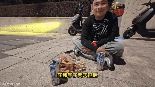 他最开始跑外卖,身上没什么钱,租的车不太好,一个月就摔三次。