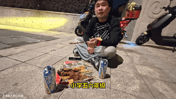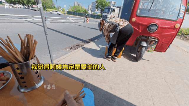 他家里养了四个孩子,压力大,妈妈岁数不小了,也依旧每天跟着他一起出摊。
