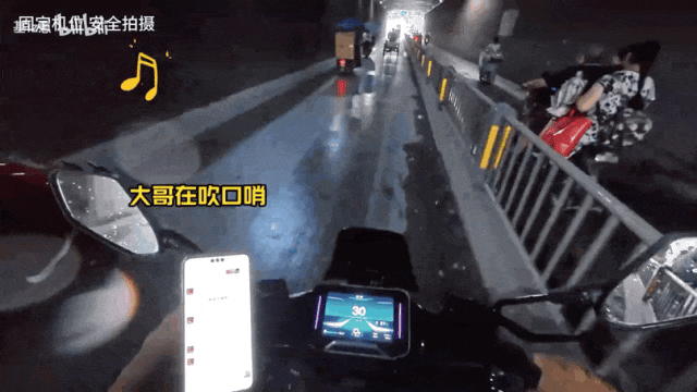 前方有位大哥,基崽就让另一位骑手大喊: