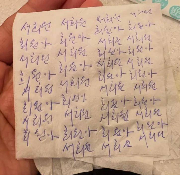 还在休息室的纸巾上,用韩文写满“熙媛”,坐在椅子上低着头出神。
