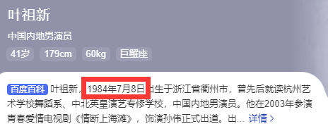 叶祖新84年出生的,今年已经26年了。