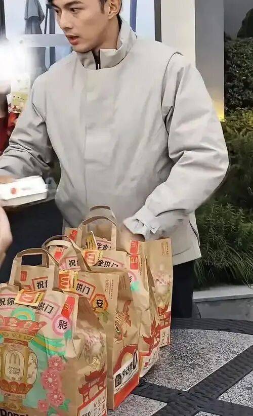 在听到粉丝说饿了之后立马让助理点了30个汉堡当场分发: